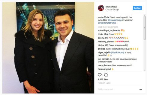 Hình ảnh do chính Emin đăng trên mạng Xã hội cho biết anh đã gặp Ivanka Trump ở Moscow tháng 2/2014. (Ảnh: Twitter)