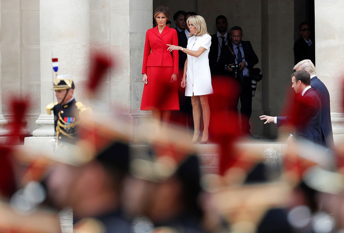 Tổng thống Pháp Emmanuel Macron và phu nhân ngày 13/7 đón tiếp vợ chồng người đồng cấp Mỹ Donald Trump tại Điện Invalides, một quần thế kiến trúc nằm ở quận 7, thủ đô Paris, và là nơi đặt lăng mộ Napoleon Bonaparte, theo Reuters.