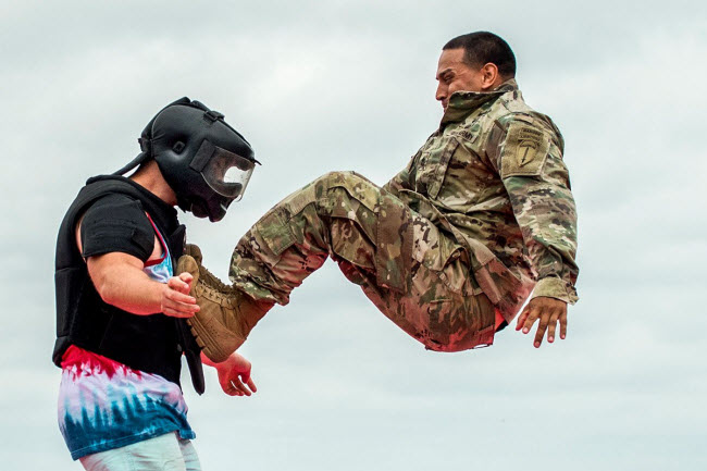 Binh sĩ trình diễn kỹ năng chiến đấu tay không tại căn cứ không quân Eglin, bang Florida.