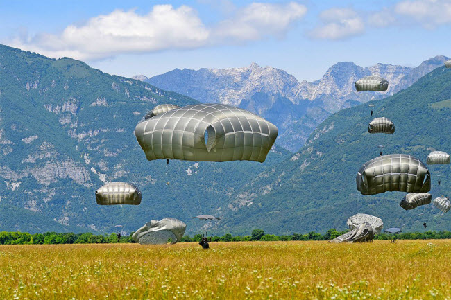 Lính dù thuộc Lữ đoàn không vận số 173 nhảy dù từ máy bay C-130 Hercules xuống khu vực Juliet ở Pordenone, Italia.