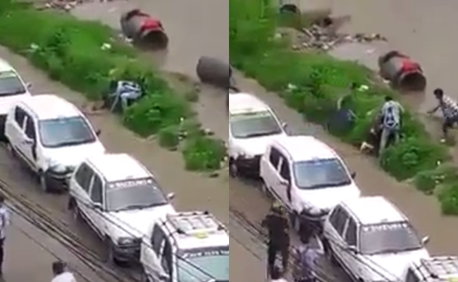 Vietbf.com - Một cô bé đang lội phố ngày mưa đã bất ngờ ngã xuống một hố nước xoáy rồi bị dòng lũ cuốn đi xa vài chục mét, làm cho nhiều phụ huynh lo lắng cho sự an toàn của con em mình trong thời điểm mùa mưa bão này, mà vụ việc trên vừa xảy ra tại thủ đô Kathmandu, Nepal.