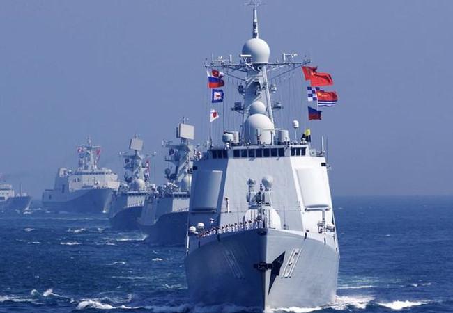 Tàu chiến Trung Quốc và Nga trong một cuộc tập trận chung năm 2013.