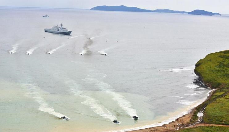 Tập trận đổ bộ liên hợp Nga - Trung ở vịnh Peter the Great ngày 25/8/2015.
