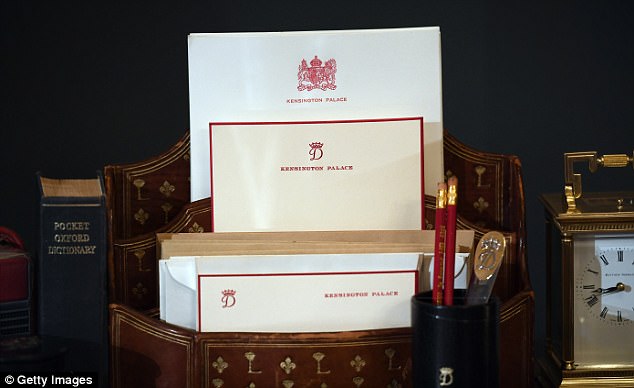 Giấy viết thư và phong bì đóng dấu điện Kensington. (Ảnh: Getty)
