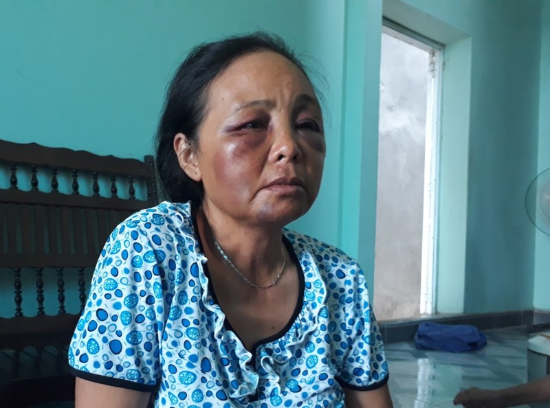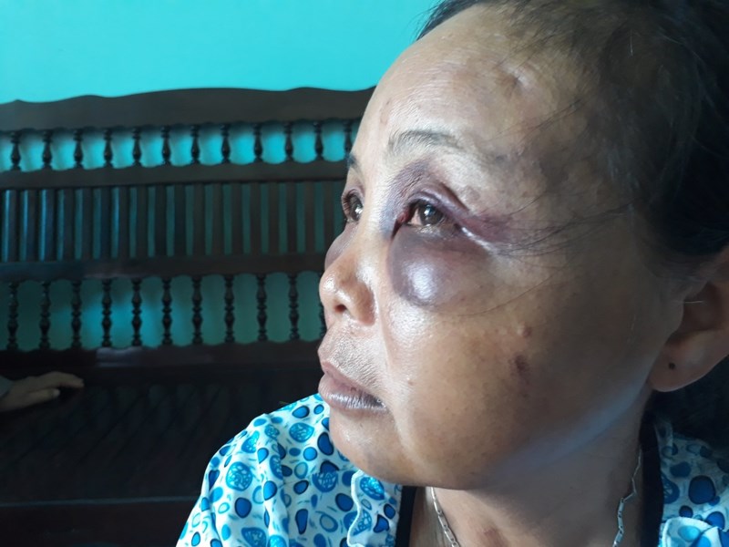 Bà Phúc bị đánh thâm tím mặt mày. Ảnh: TUYẾN PHAN