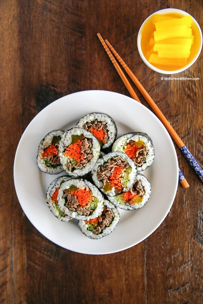 Kimbap là món cơm cuộn Hàn Quốc ngon nổi tiếng. Món ăn này làm dễ dàng và hấp dẫn mọi lứa tuổi. Công thức cơm cuộn thịt bò dưới đây đảm bảo nhà bạn ăn thích mê.