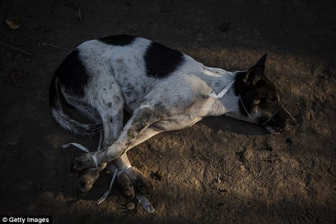 Tờ Daily Mail vừa đăng tải những hình ảnh gây sốc khi một vài chú chó bị buộc chân và mõm tại Yogyakarta, Indonesia. Những chú chó có vẻ mặt khá buồn vì chúng cảm nhận được thời gian sống chỉ còn tính bằng phút.