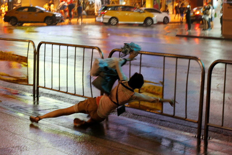 Ít nhất 103 người bị thương, chủ yếu do các vật thể rơi từ trên cao xuống, tai nạn giao thông, hoặc bị trượt ngã trên đường. Đài Bắc ở trung tâm đảo Đài Loan cũng bị ảnh hưởng lớn từ Nesat. Ảnh: Reuters.