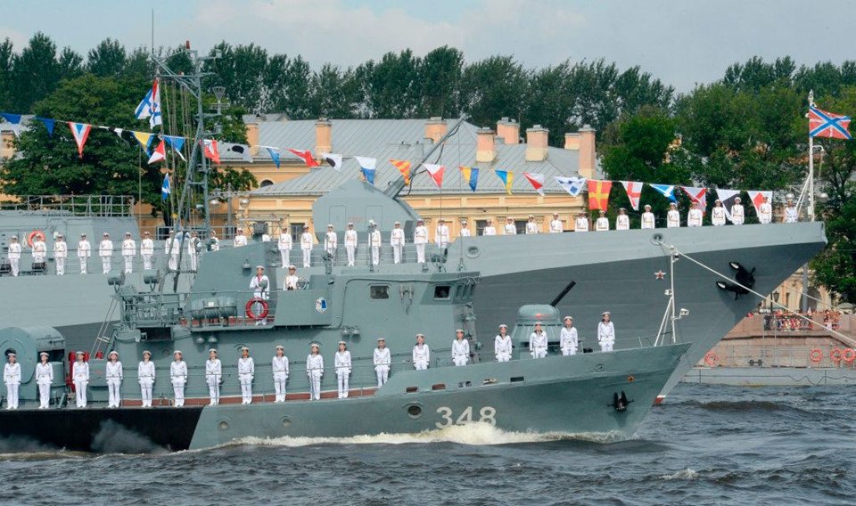 Vietbf.com - Hải quân Nga đã phô trương sức mạnh trong buổi lễ duyệt binh lớn kéo dài từ biển Baltic đến bờ biển Syria, và trong buổi lễ này có sự tham dự của Tổng thống Vladimir Putin với sự tàu hộ tống Stoikiy trên đường đến thị sát buổi lễ.