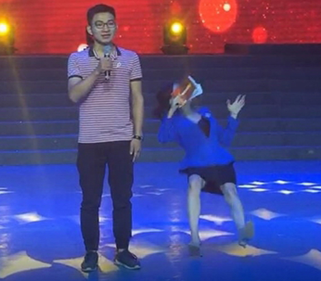 Old  China TQ: Nữ MC ngã gục trên sân khấu khiến fan thót tim