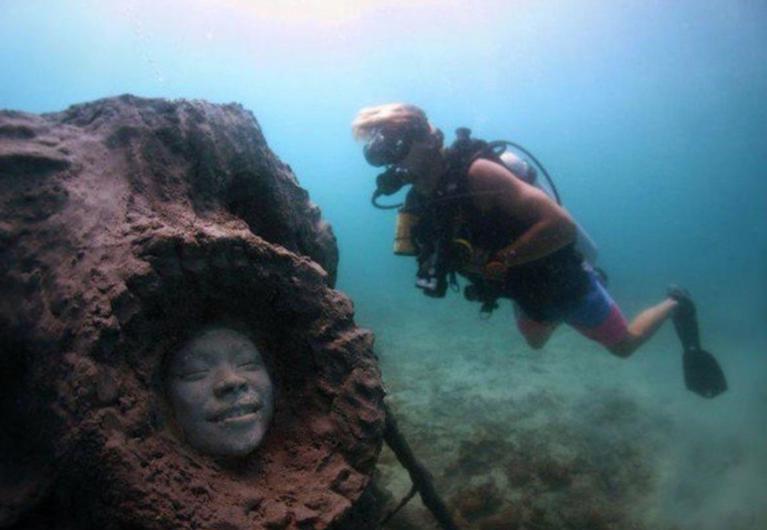 Khi lặn xuống đáy biển tại vùng biển của đảo Koh Tao, Thái Lan. Những khuôn mặt ở dưới đáy biển có lẽ khiến nhiều người cảm thấy kinh ngạc. Vậy đằng sau những khuôn mặt này mang ý nghĩa gì?