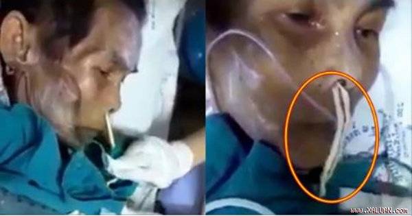 Một người đàn ông trông rất yếu ớt vì bị suy dinh dưỡng nặng. Ông này đã phải nhập viện trong tình trạng mũi có thứ dài loằng ngoằng màu trắng đang lòi ra ngoài. Sau khi thăm khám, bác sĩ mới sửng sốt phát hiện.