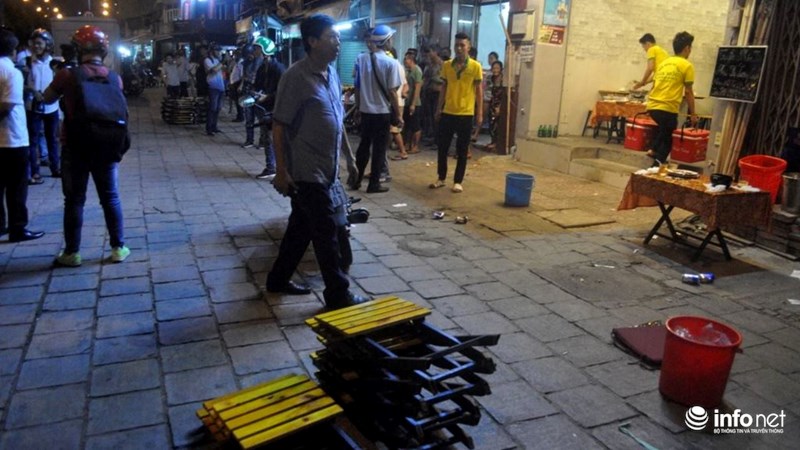 Không chỉ bàn ghế, vật dụng, mà những biển hiệu lấn chiếm vỉa hè cũng bị dọn sạch.