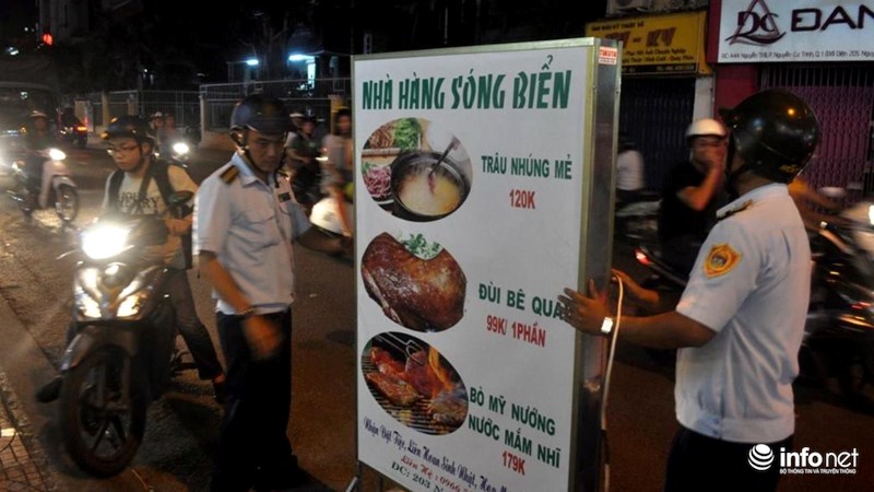 Một quán ăn trên đường Võ Văn Kiệt nhanh chóng dẹp bàn ghế vào phía trong khi đoàn kiểm tra xuất hiện.