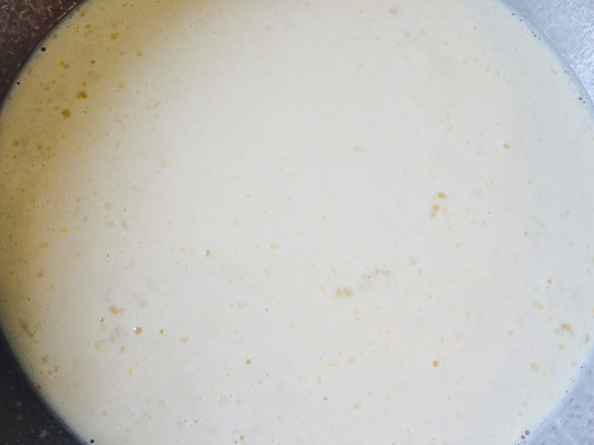 + Phần vỏ bánh: Cho 200 gram bột gạo và 100 gram bột năng vào thau trộn đều, rồi đổ nước lọc vào hòa tan, tiếp đến đập chừng 4 quả trứng vào bột, quậy đều sao cho hỗn hợp bột loãng có độ sền sệt vừa phải để tráng bánh.