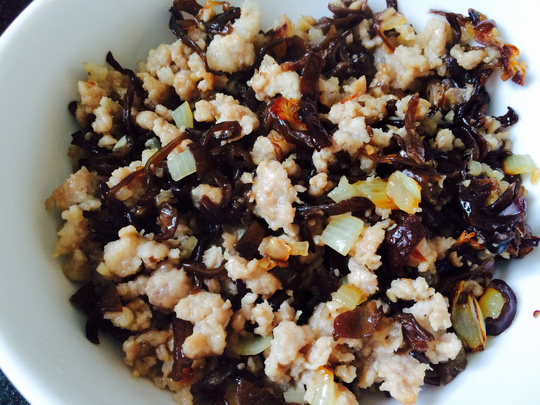 - Nấm mèo ngâm với nước ấm nóng cho nở, rửa sạch, băm nhỏ.