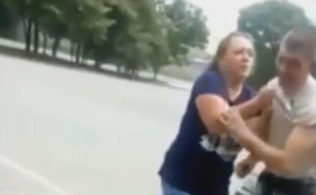 Sau khi tên cướp đứng dậy, người phụ nữ vẫn không buông tha. Cô bám chặt cổ áo tên cướp và tiếp tục tát. Tên cướp la hét, cầu cứu nhưng không ai vào giúp đỡ.