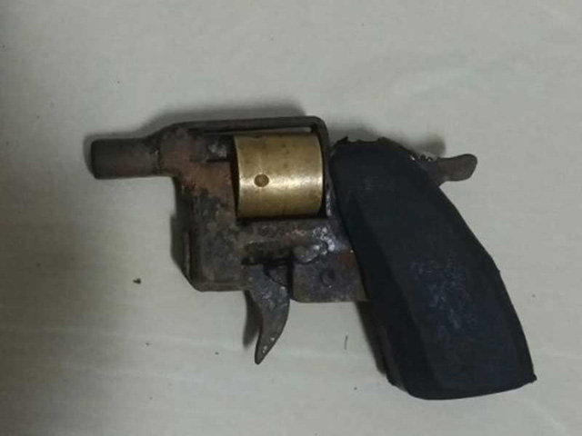 Khẩu súng mà các bị can sử dụng trong sòng bạc. Ảnh: KL
