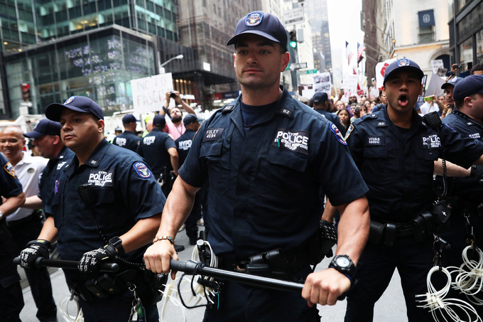 Cảnh sát New York ngăn chặn người biểu tình trước Tháp Trump ở Manhattan, New York.