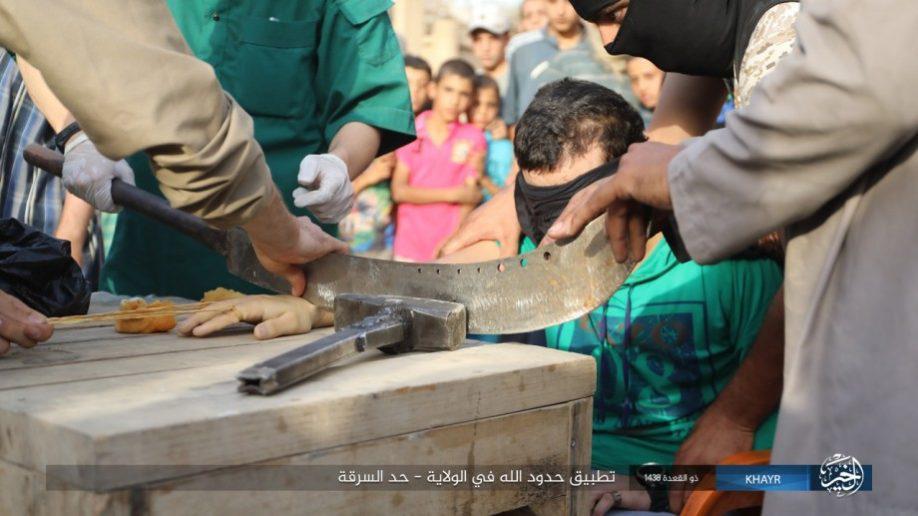 IS vừa tung hình ảnh các chiến binh tra tấn và giết hại những người vi phạm bộ luật hà khắc của chúng ở Syria. Những bức ảnh tuyên truyền phản ánh sự tàn bạo của nhóm khủng bố này bao gồm chặt tay kẻ trộm, ném người đồng tính từ tòa nhà cao tầng xuống đất, bắn chết một người đàn ông không chịu ủng hộ chúng giữa phố đông hay phạt đòn người bị buộc tội "ăn cơm trước kẻng".