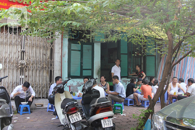 Có điều so với rất nhiều quán sáng ở Hà Nội thì giờ mở cửa của quán này có phần hơi sớm, khoảng 6 giờ và chỉ đến tầm 8 giờ, muộn lắm thì đến 8 giờ 30 là quán chỉ còn vài bát vét nồi.