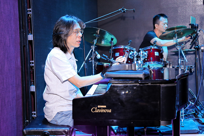 Danh ca Tuấn Ngọc cũng đến từ sớm và trò chuyện với mọi người trước khi khớp nhạc.