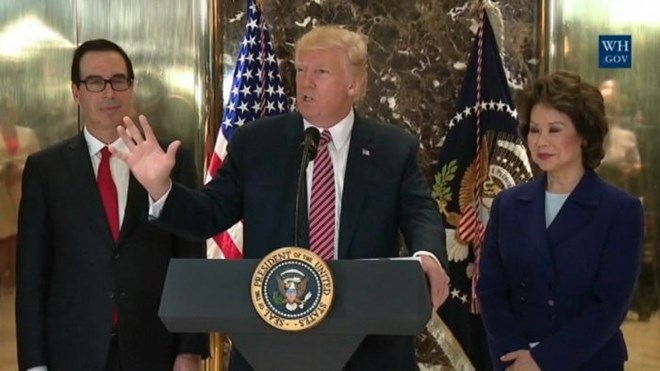 Hôm 15/8, phát biểu tại một cuộc họp báo ở thành phố New York, Tổng thống Trump đã lên tiếng cáo buộc cả "hai bên," gồm những người dân tộc chủ nghĩa và những nhà hoạt động chống phân biệt chủng tộc, gây ra bạo lực tại thành phố Charlottesville, bang Virginia.