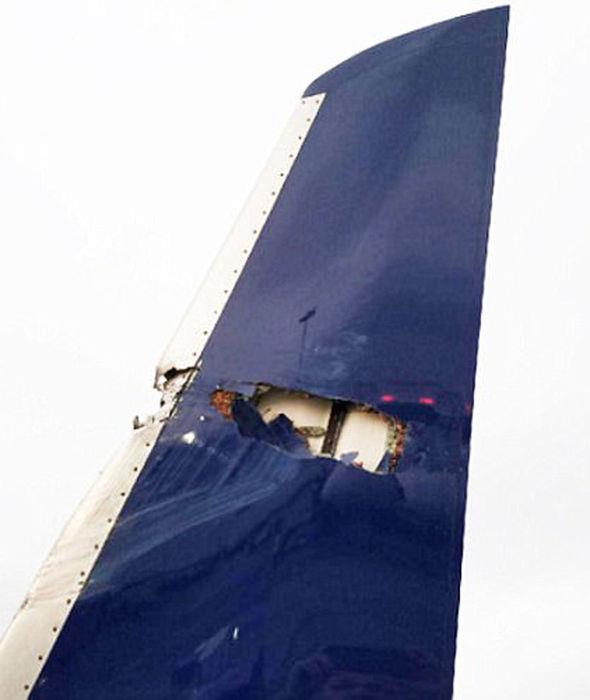 Cánh máy bay của Delta Airlines bị thủng sau cú va chạm. Ảnh: Twitter
