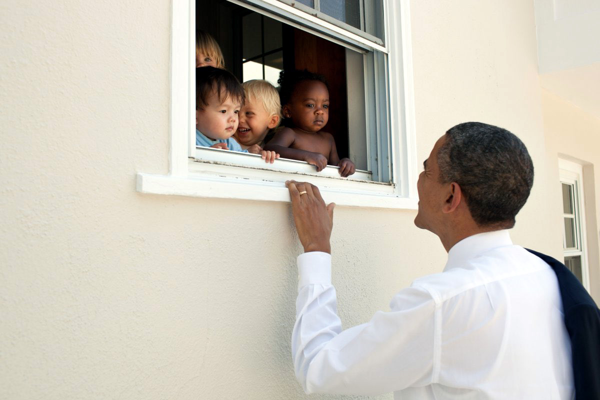 Câu nói đó được đính kèm bằng một tấm ảnh chụp cảnh ông Obama chào hỏi một nhóm trẻ em thuộc các chủng tộc khác nhau, tại cửa sổ của một trung tâm chăm sóc trẻ em.