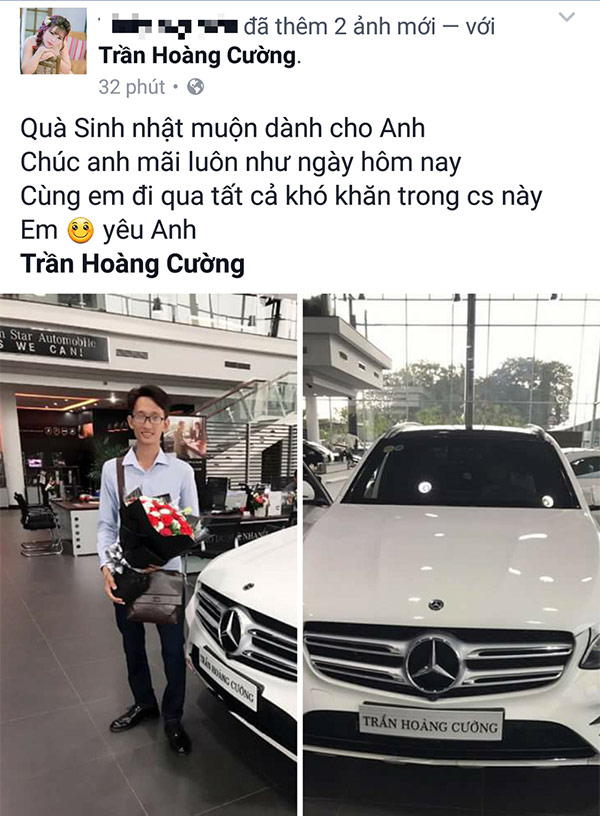 Trong đoạn status, cô nàng ngọt ngào viết: “Quà sinh nhật muộn cho anh. Chúc anh mãi luôn như ngày hôm nay, cùng em đi qua tất cả khó khăn trong cuộc sống này. Em yêu anh”.