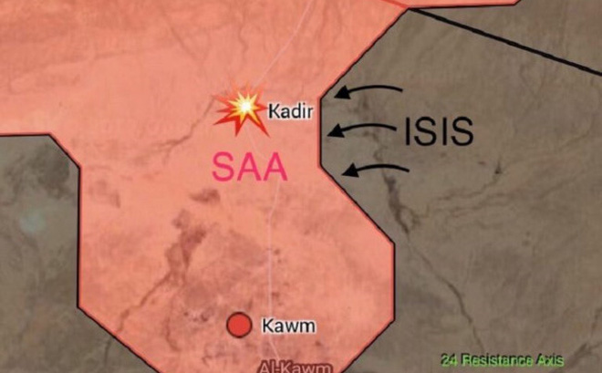 Ngay sau cuộc không kích, một nhóm chiến binh IS lập tức tiến hành cuộc tấn công đánh vào chiến tuyến của quân đội Syria. Kadir là một ngôi làng quan trọng nằm trên tuyến đường Resafa-Sukhna, phía bắc của ốc đảo Kawm.