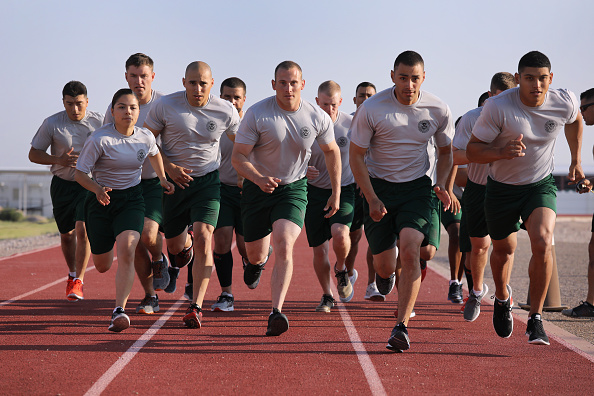 Các tuyển sinh đang tham dự một cuộc chạy thử sức tại Trường Huấn Luyện Biên Phòng tại