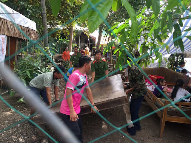 Chính quyền địa phương đã huy động lực lượng công an, dân quân đến hiện trường hỗ trợ người dân di dời tài sản và đến nơi mới ở tạm để tránh thiệt hại về tài sản.
