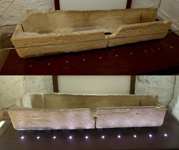 Quan tài bằng đá được tìm thấy trong một tu viện vào năm 1921, với bộ xương bên trong có thể là của tu sĩ cấp cao, theo Daily Mail.