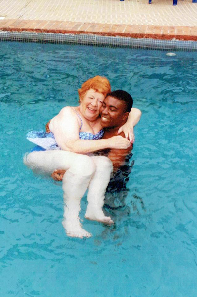 Angela có ba người con trai 50, 47 và 43 tuổi. Bà kể lại: "Tuy chênh lệch tuổi tác nhưng chúng tôi vẫn cảm thấy rất hợp nhau. Tôi không thể ngăn bản thân mình có tình cảm với anh ấy. Khi tôi lần đầu tiên kể với con trai tôi là Malcolm về CJ, con tôi lo lắng rằng anh ấy có thể là kẻ lừa đảo. Vì vậy Malcolm đã kiểm tra CJ và nhận thấy chúng tôi thực sự hạnh phúc. Vài tuần sau, CJ nói rằng anh ấy có tình cảm với tôi".