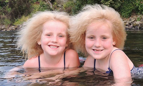 Bé Agnetha và Anja Norendal, 9 tuổi, ở Cockermouth, Cumbria, Anh luôn khiến người đi đường hiếu kỳ, Brief Report ngày 25/8 đưa tin. Bà Angela, 52 tuổi, mẹ của cặp song sinh nhận ra sự khác thường ngay khi hai con bắt đầu mọc tóc với những sợi tóc cứng, xoăn, không thể chải vào nếp. Một bác sĩ từng đoán hai em mắc hội chứng tóc không thể chải (UHS), xảy ra do đột biến gene.