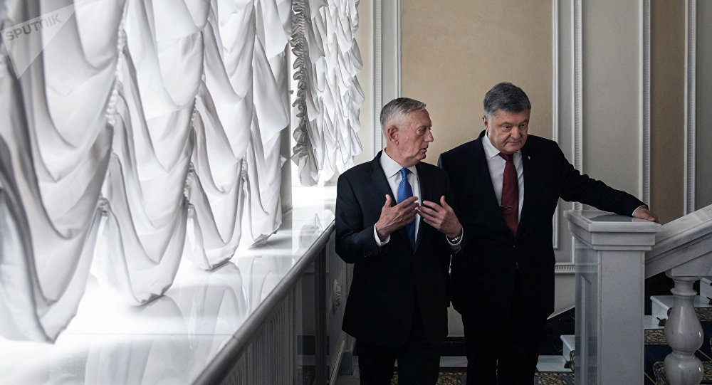 Bộ trưởng Quốc pḥng Mỹ James Mattis với Tổng thống Ukraina Petro Poroshenko tại Kiev.