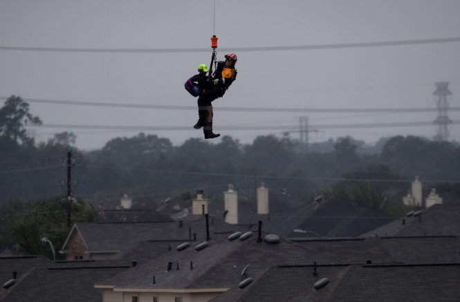 Lực lượng cứu hộ cứu người bằng trực thăng ở TP Houston - Ảnh: REUTERS
