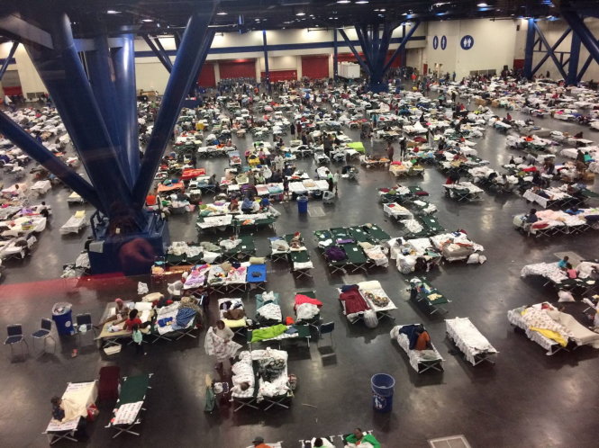 Trung tâm hội nghị George R. Brown chật kín người tạm trú - Ảnh: REUTERS