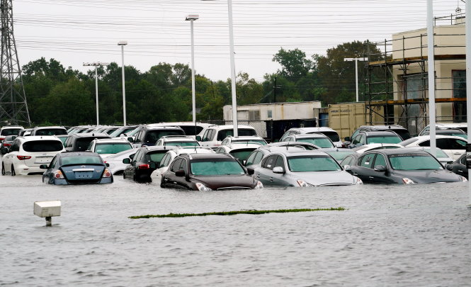 Một bãi bán xe hơi bị ngập ở TP Houston ngày 29-8 - Ảnh: REUTERS