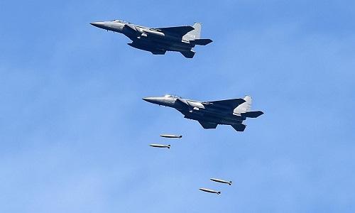 Tiêm kích F-15K của Hàn Quốc diễn tập gần biên giới Triều Tiên. Ảnh: Yonhap.