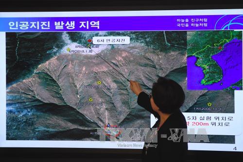 Hình ảnh biểu đồ sóng địa chấn sau vụ động đất được cho là thử hạt nhân của Triều Tiên được công bố tại Trung tâm khí tượng học Hàn Quốc ở Seou ngày 3/9. Ảnh: AFP/TTXVN