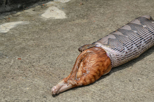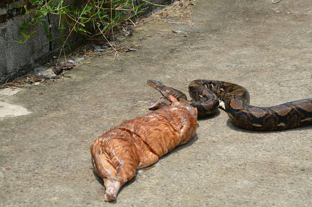 Chú mèo tội nghiệp đã tử vong trong bụng trăn.