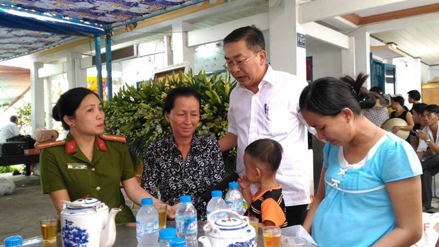 Còn chị L, (vợ anh Long) ngồi đó nắm chặt tay chồng và dỗ dành con trai. Có những lúc chị vén tấm vải nhìn anh Long rồi lại bật khóc gọi tên chồng trong nỗi đau vô hạn.