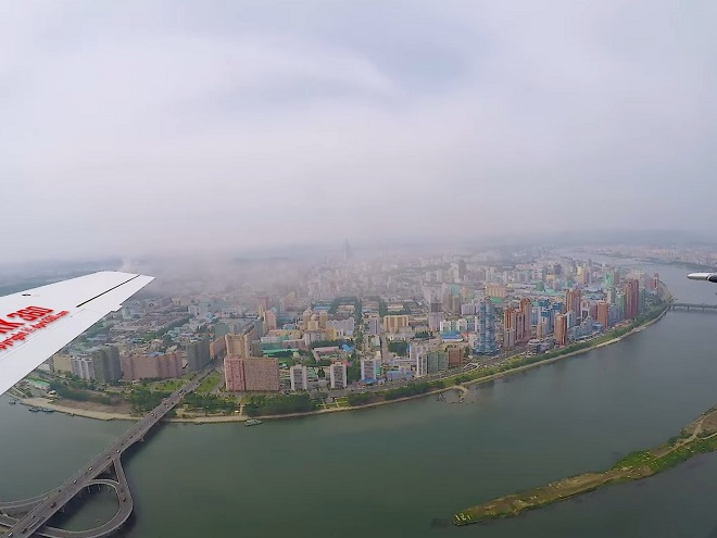 Video do nhiếp ảnh gia người Singapore Aram Pan quay trên máy bay Piper Matrix PA-46, bay vòng quanh thủ đô Bình Nhưỡng.