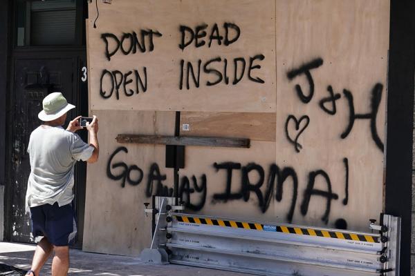 Mặc dù cho đến hôm 9/9, đa số người dân ở Florida đã sơ tán tránh bão. Đường phố vắng tanh một cách kỳ lạ. Tuy vậy trên đường phố, rất nhiều thông điệp mà họ để lại để "thách thức" siêu bão Irma.