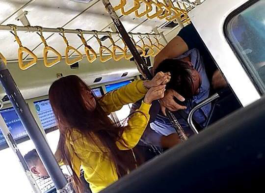 Đôi nam nữ và tiếp viên xe buýt lao vào đánh nhau
