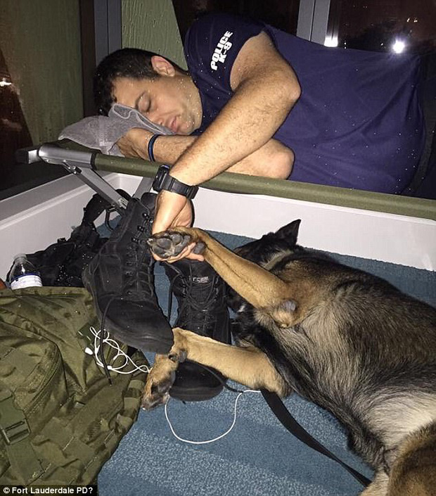 Để biểu dương tinh thần làm việc miệt mài và dũng cảm của lực lượng cảnh sát cùng các nhân viên cứu hộ, vào ngày hôm nay, Sở cảnh sát thành phố Fort Lauderdale đã đăng tải bức ảnh ghi lại khoảnh khắc nghỉ ngơi ấm áp của 1 nhân viên bên chú chó nghiệp vụ đáng yêu.