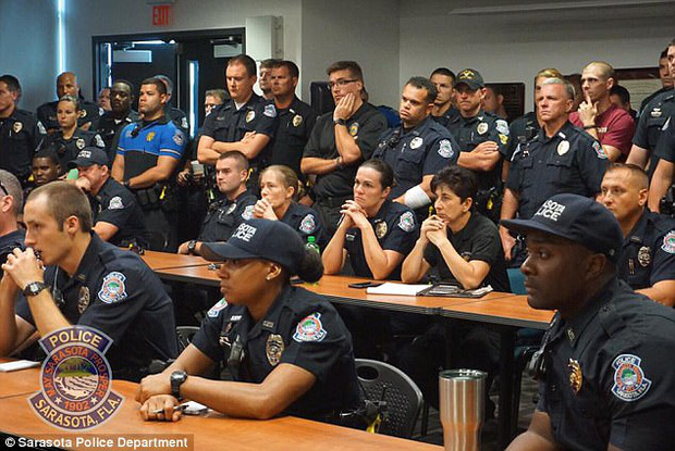 Cảnh sát thành phố Sarasota chăm chú trong cuộc họp chuẩn bị để ứng phó với bão Irma.