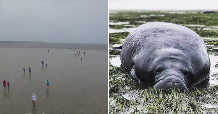 Người dân ở hạt Manatee đã phát hiện 2 con hải ngưu hiếm gặp bị mắc cạn sau khi nước rút khỏi vịnh Sarasota, bang Florida.